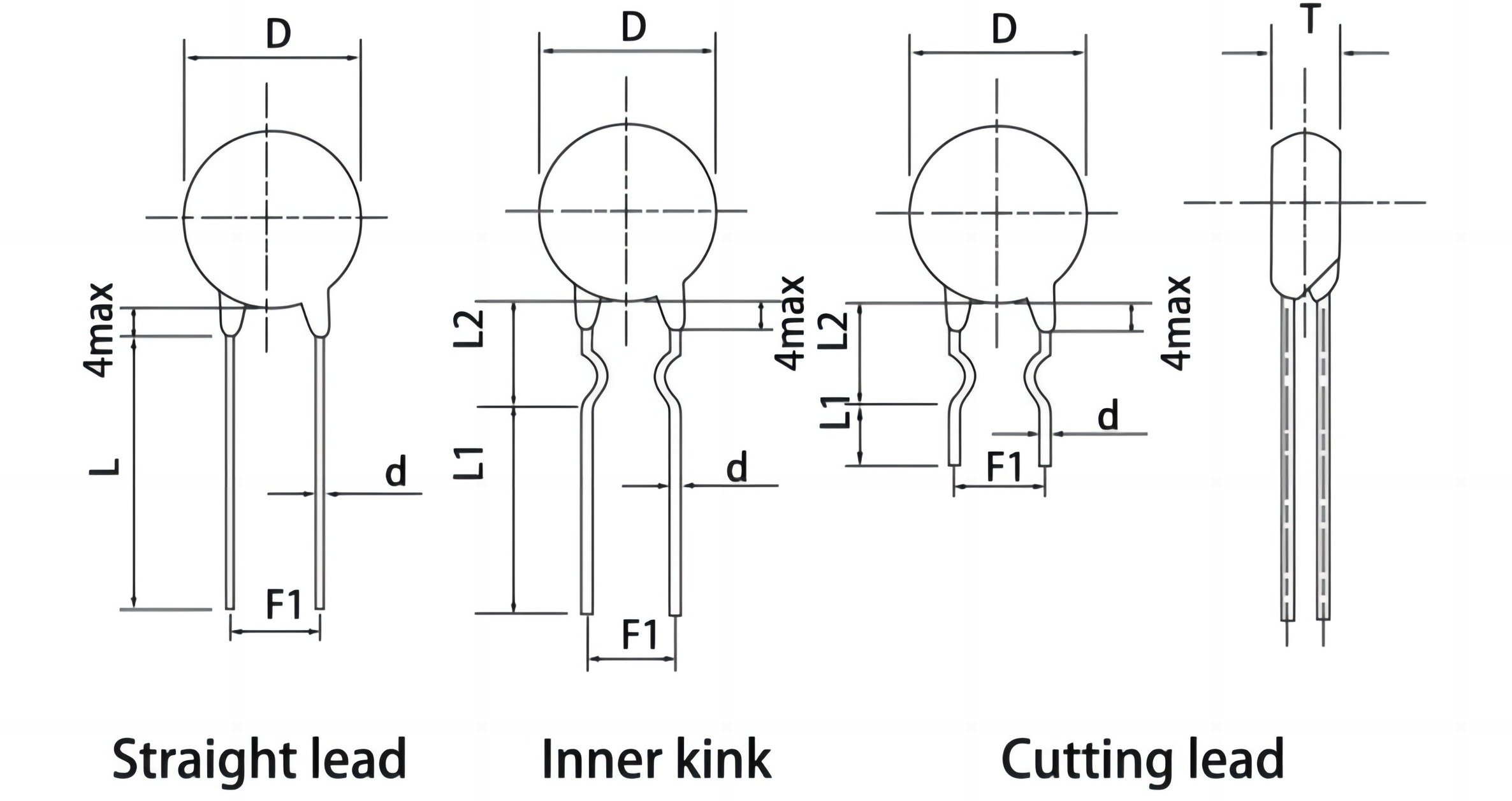 | Độ sâu (mm) | DTỐI ĐA | TTỐI ĐA | d±0,05 | F1±1 | Chì thẳng | Chì cong | |